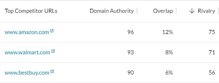 This is easier to show than tell. Let’s take a look at big box retailer, Target. True Competitor returns the following top three: